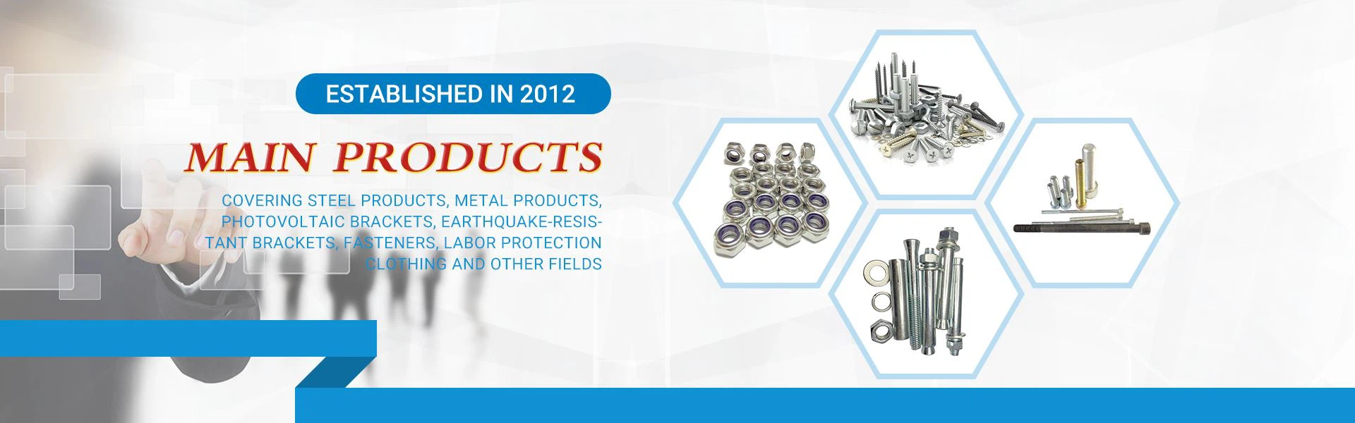 Uzņēmuma bizness ir plašs, kas aptver tērauda izstrādājumus, metāla produktus, fotoelektriskās kronšteinus, zemestrīces izturīgas kronšteinus, stiprinājumus, darba aizsardzības apģērbu un citus laukus.